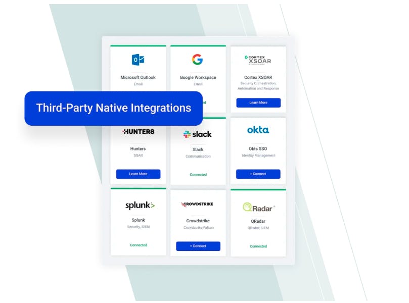 Abnormal can integrate into popular security operations solutions with API-based integrations that allow security teams to use Abnormal’s threat detection within existing workflows.