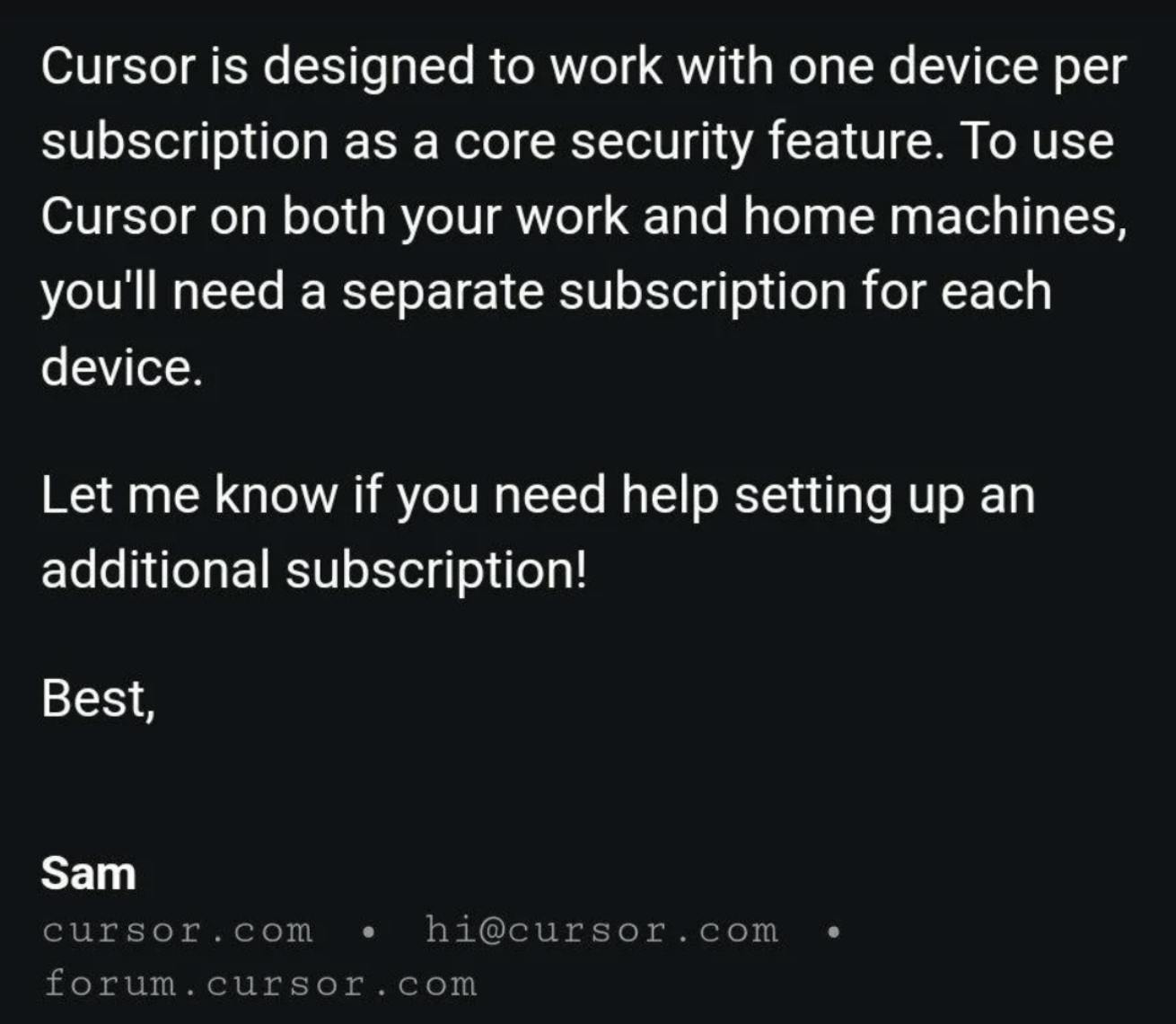 In April 2025, Cursor users encountered a session management bug that caused logouts when switching devices. When users contacted support, the AI support agent, Sam, provided a fabricated explanation, falsely stating the behavior was due to a new single-device policy. The company later confirmed the issue was a backend bug, and the support response was an AI hallucination, not an intentional policy change.