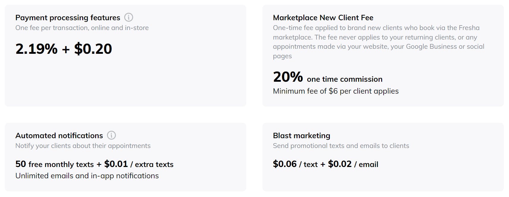 Boulevard also charges a take rate of 2.65% + $0.15 for credit and debit card processing, with discounts available at volume.