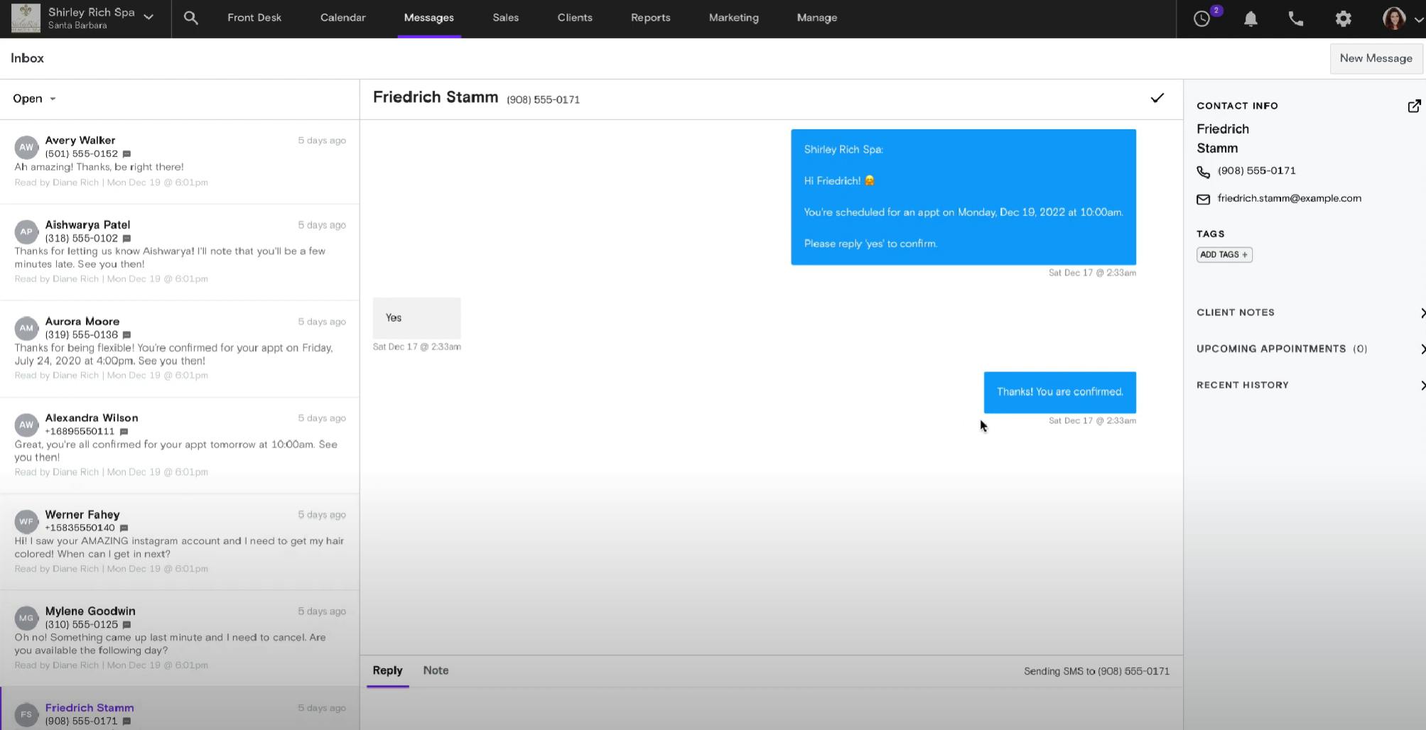 The platform also has a built-in messaging system for clients to communicate with their customers about upcoming appointments, check-in with customers periodically, and additional one-and-done blast marketing.