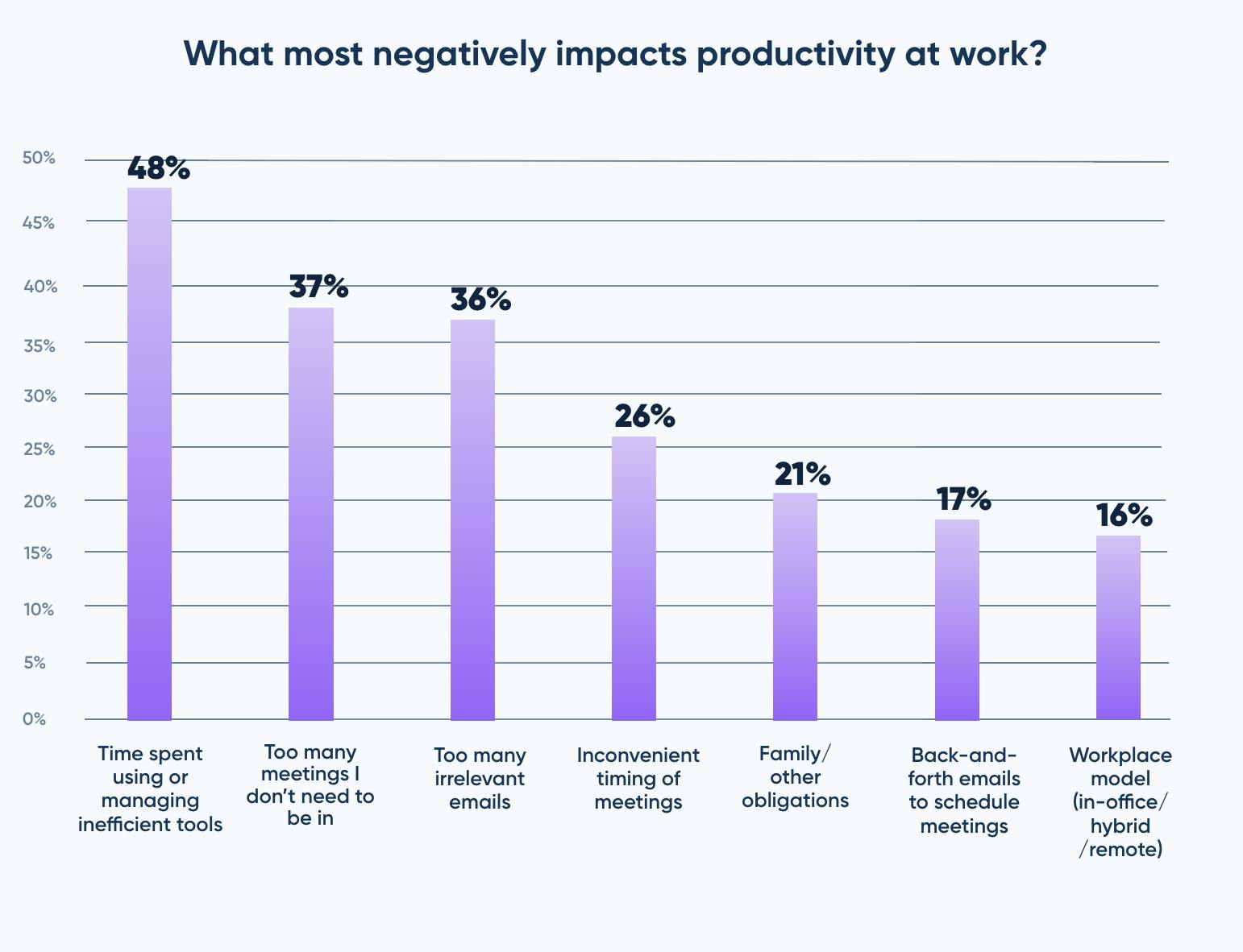 As of 2023, 40% of workers spent up to 30 minutes per week scheduling meetings, and each meeting was delayed, on average, by almost 11 minutes due to attendees not being synced on meeting details. Research from Microsoft in 2023 stated that people felt like they had two jobs: the job they were hired to do and another job of “communicating, coordinating, and collaborating” on emails and meetings, leaving people feeling “quite overwhelmed.” As a result, 76% of employees were willing to pay out of pocket for productivity tools to free up time for their job responsibilities.