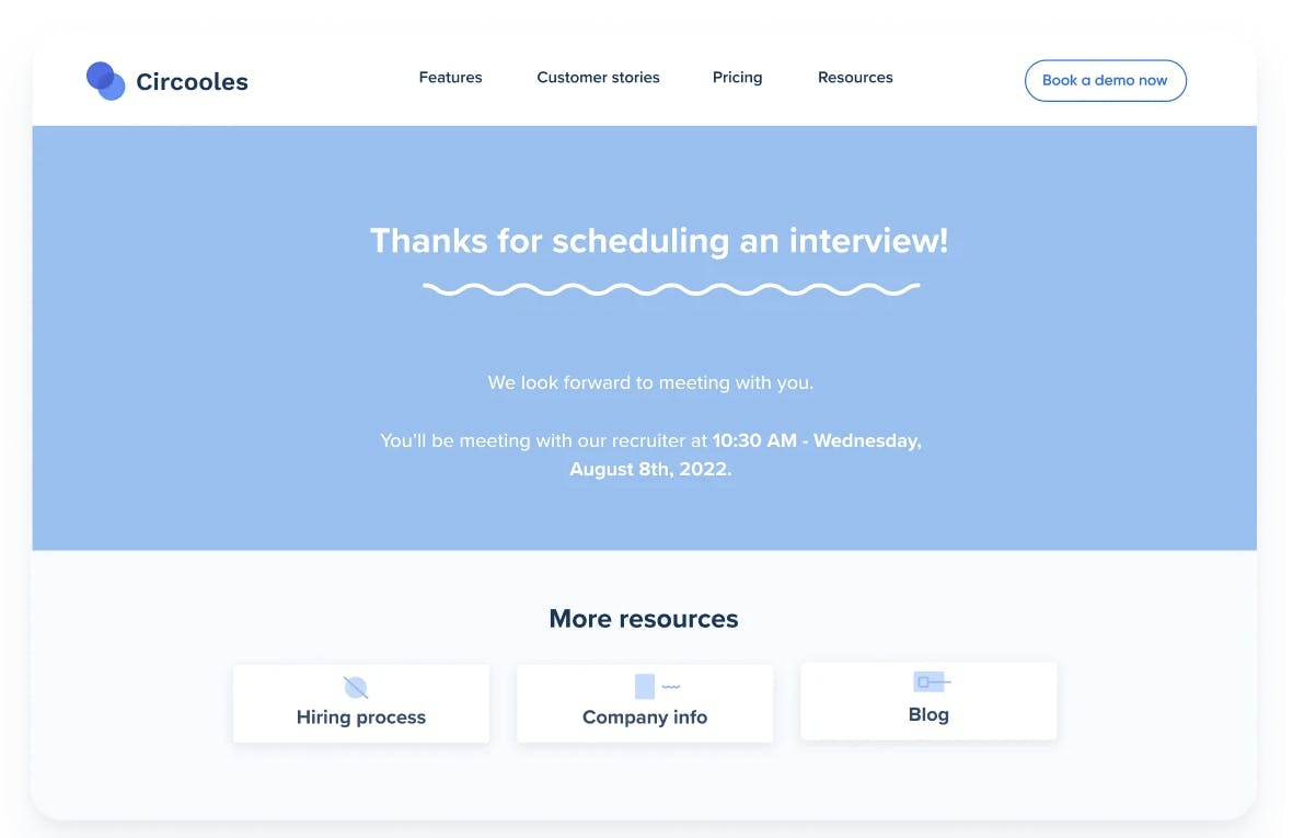 For recruiters, Calendly automatically syncs candidate records with Applicant Tracking Systems (ATS) like Greenhouse, JazzHR, Zoho Recruit, and Lever, minimizing the need for manual data entry. The platform helps recruiting teams automate round-robin calls and find availability for group meetings. After a meeting is booked, recruiters can create a custom confirmation page to provide applicants with additional information about the process or redirect them to any relevant webpage.