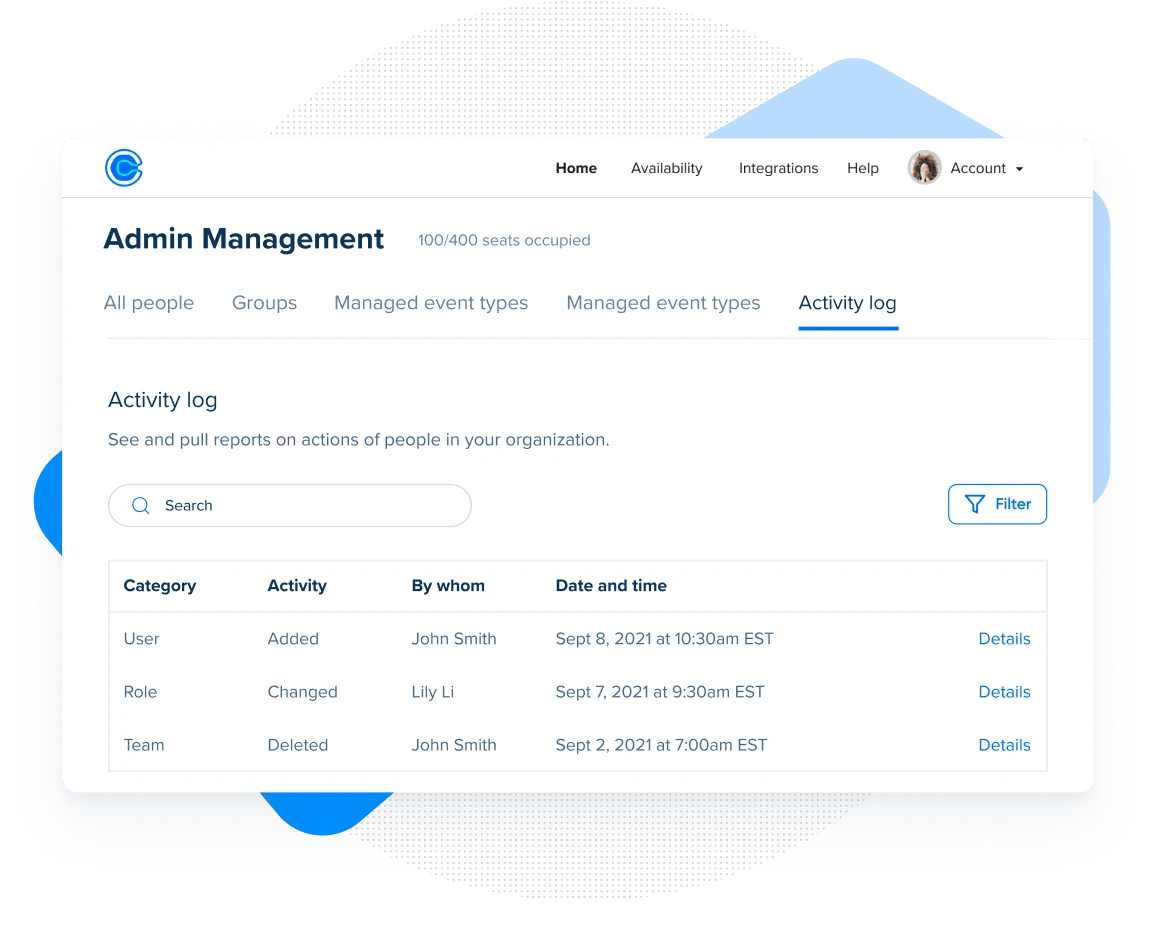 Calendly also features an administration dashboard that allows organizations to manage users. Administrators can organize team members into groups and standardize meeting types and automated reminders across the entire team. This centralized control helps streamline scheduling processes and helps with consistency in meeting management.