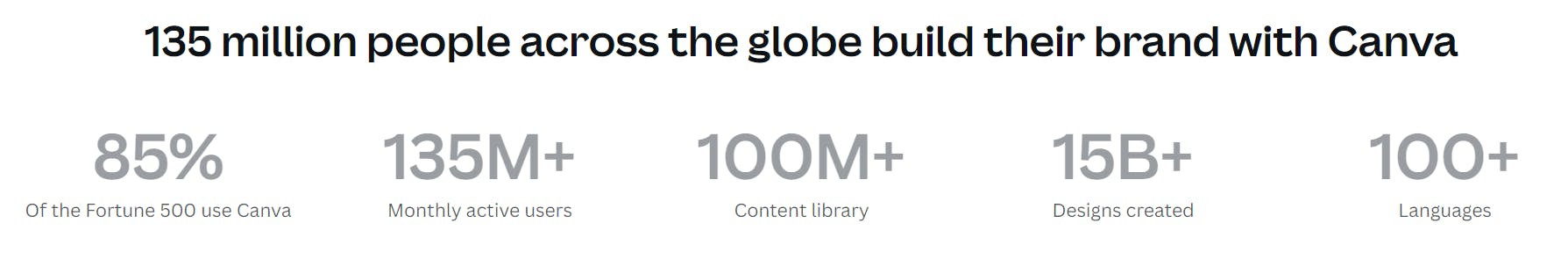 Canva’s target customers are creators looking for a simple way to create designs. The company’s platform targets users who do not want to learn or use complex design software. Customers include consumers, entrepreneurs, teachers, marketers, and enterprises. Canva makes the design process easy with pre-made templates for social media, presentations, and print. While Canva’s focus has remained on usability, it has also managed to attract customers from ~85% of the world’s 500 largest companies. As of September 2023, Canva has over 135 million monthly active users. Some of Canva’s enterprise customers include Raindance Film Festival, F45, and the Philadelphia Eagles.