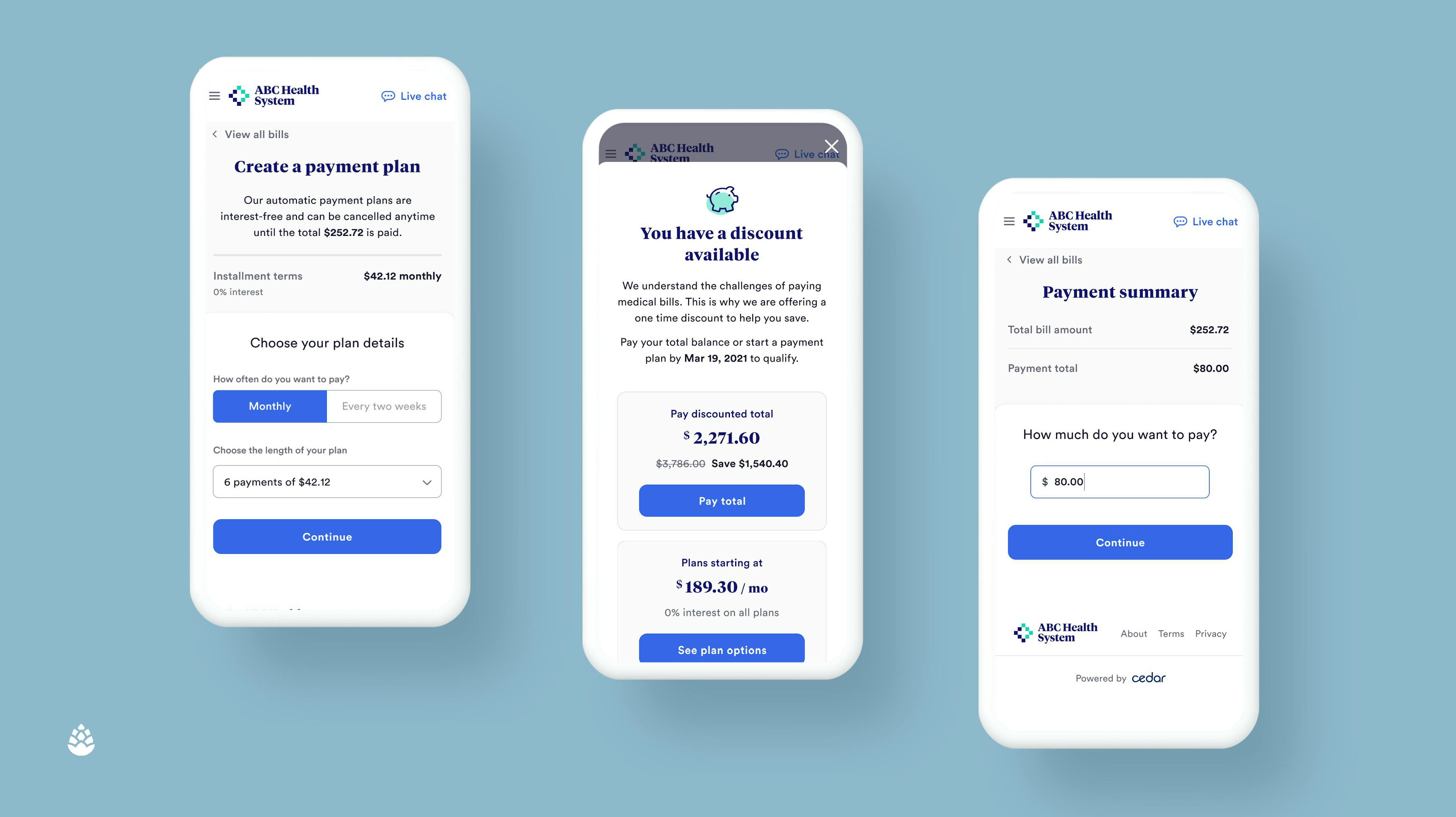 Providers who become patients of Cedar typically want a modernized patient touchpoint service. Usually, these customers are dealing with legacy patient collection systems using paper billing and a combination of various point solutions. In addition, these providers typically have limited collection experience, and use Cedar for an immediate increase in collection percentage.
