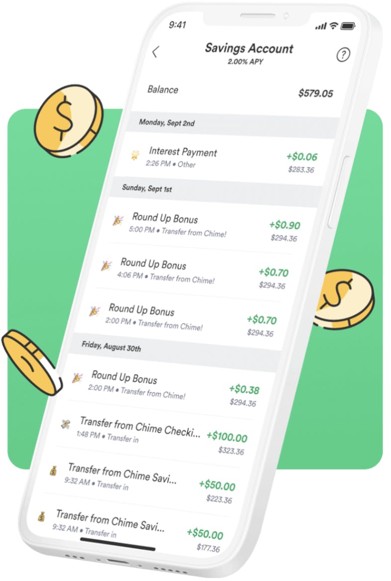 Chime offers a savings account with a 2% APY as of May 2024. The Chime Savings Account has no monthly fees, no maximums on interest earned, and no minimum balance required. Chime also offers additional ways to boost savings. Its “Round-Ups” feature automatically rounds up debit card transactions to the nearest dollar and transfers the difference to the savings account. Chime also offers a “Save When I Get Paid” feature which sets aside a percentage of direct deposits.