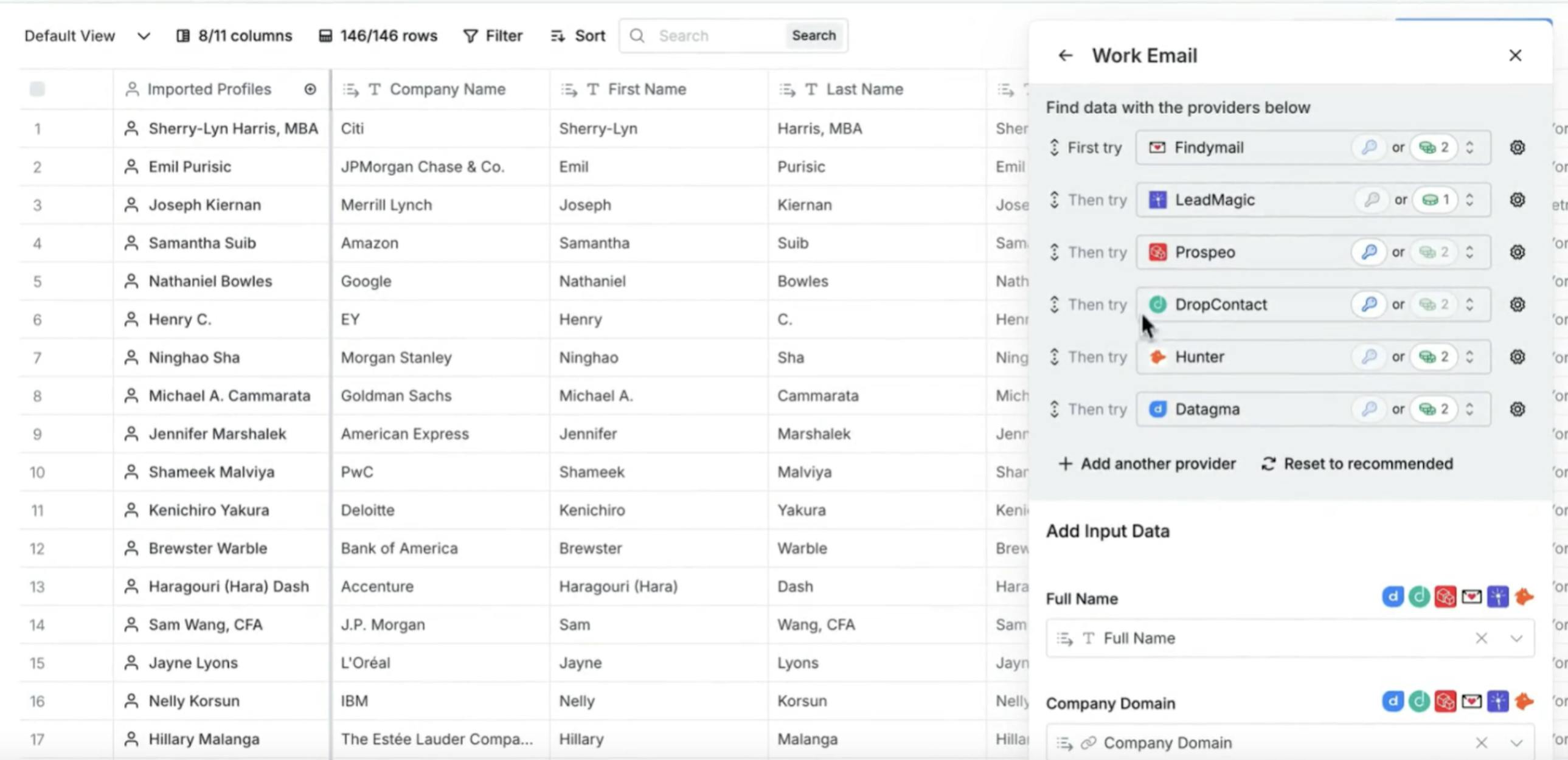 Clay’s data enrichment tool enables customers to enhance first-party data with over 130 data providers as of July 2025. Customers can connect their CRM or data platform to integrate with these providers through Clay’s built-in waterfall enrichment feature. This feature allows customers to choose and sequentially search a list of databases, such as Apollo.io, Hunter.io, and ZoomInfo, ensuring that existing matches are found. For example, if a user needs prospect phone numbers, Clay can sequentially query several databases until it finds a number; an approach that helped Anthropic to triple its contact enrichment rates versus relying on a single provider.