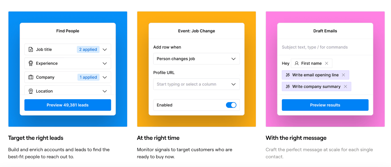 Apollo.io started as a database of contacts for GTM teams. The company has evolved to support GTM processes and offers enrichment and prospecting tools similar to Clay. However, these tools rely on data from Apollo.io’s database, and Apollo.io offers more standardized workflows. In contrast, Clay’s software integrates with multiple data sources and offers more customizable workflows.