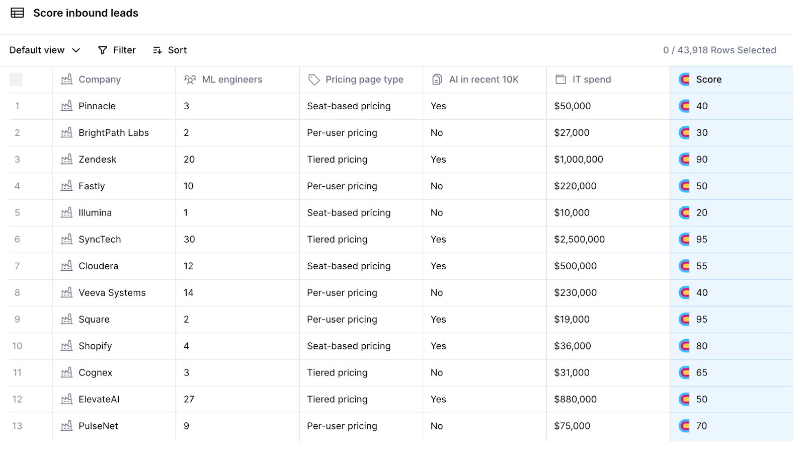 Clay offers an account and lead scoring tool that uses data enrichment and its AI agent. This enables sales teams to effectively score prospective customers to manage time and resources for outreach. The platform enables users to set criteria for determining a prospect’s score and provides relevant data to generate the score. A company can use Clay to set multiple criteria for evaluating a given prospect, such as industry, seniority, or technology stack.