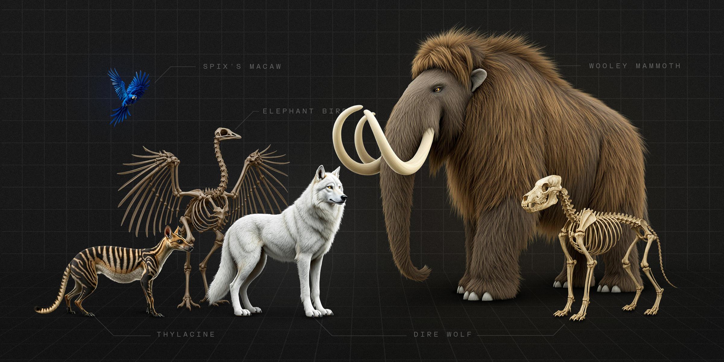Colossal Biosciences also uses CRISPR, which allows precise editing of DNA. This genome editing method works by creating genetic scissors that can accurately delete sections of DNA and create cuts where scientists can insert new genes. Rather than creating entirely new genomes, they edit the DNA of the extinct animal's closest living relative to incorporate key genetic traits from the extinct species.