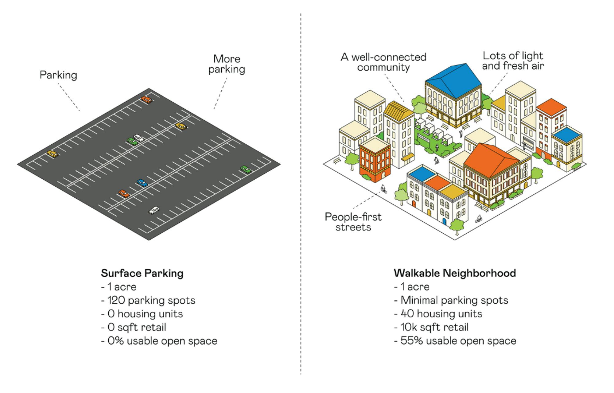 Despite the lack of viable alternatives, demand remains for a different vision of how American cities could look; 79% of Americans desire to live in walkable, pedestrian-focused communities as of 2023 and 78% of these people are willing to pay more to live in them. What’s missing is the initiative to supply that demand.