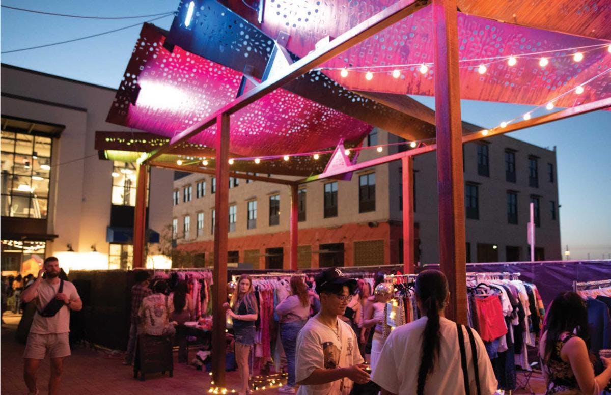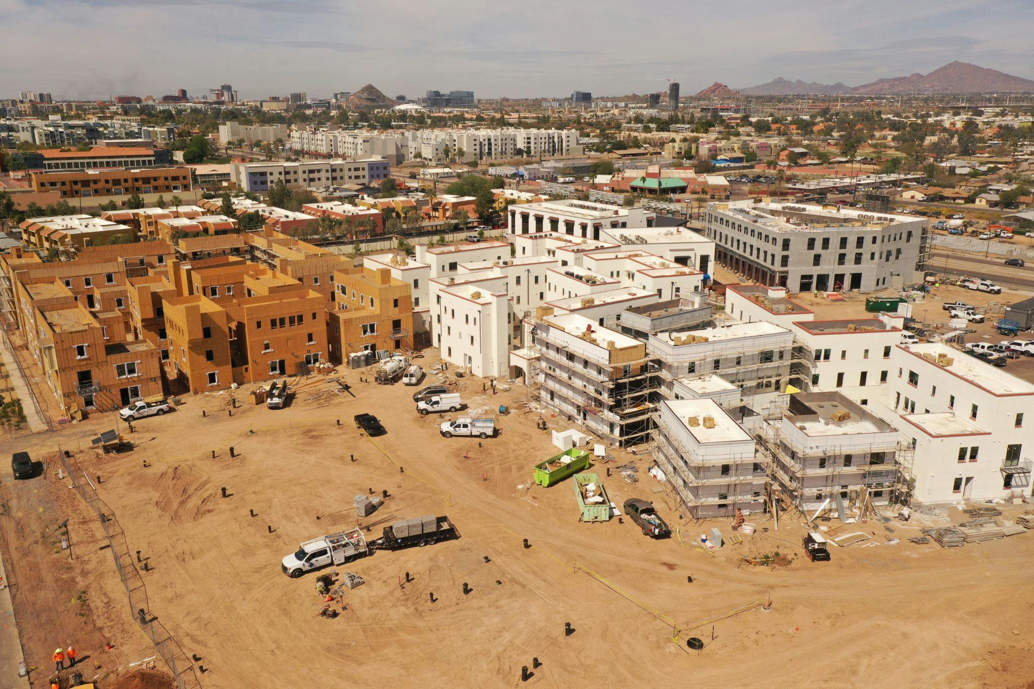 The neighborhood is located by a light rail station that connects residents to downtown Phoenix, downtown Tempe, and the airport. There are on-site Bird rental electric scooters, over 1K bike racks, full-service e-bike shops, and even biking classes. For the occasions when residents need a car, they can access 15% off all Lyft rides, free and discounted Waymo rides, and an on-site EV carshare service that starts at $5 per hour.