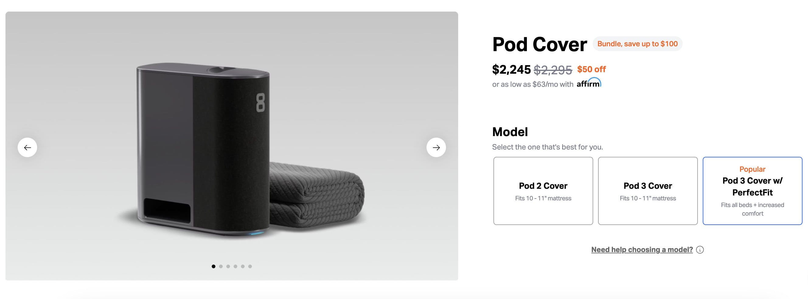 Eight Sleep’s Pod Cover is designed to fit on customers’ existing mattresses, similar to a mattress cover. The company sells a “PerfectFit” cover that fits all mattresses, but a customer can opt to get one that fits 10”-11” mattresses for $100 cheaper.