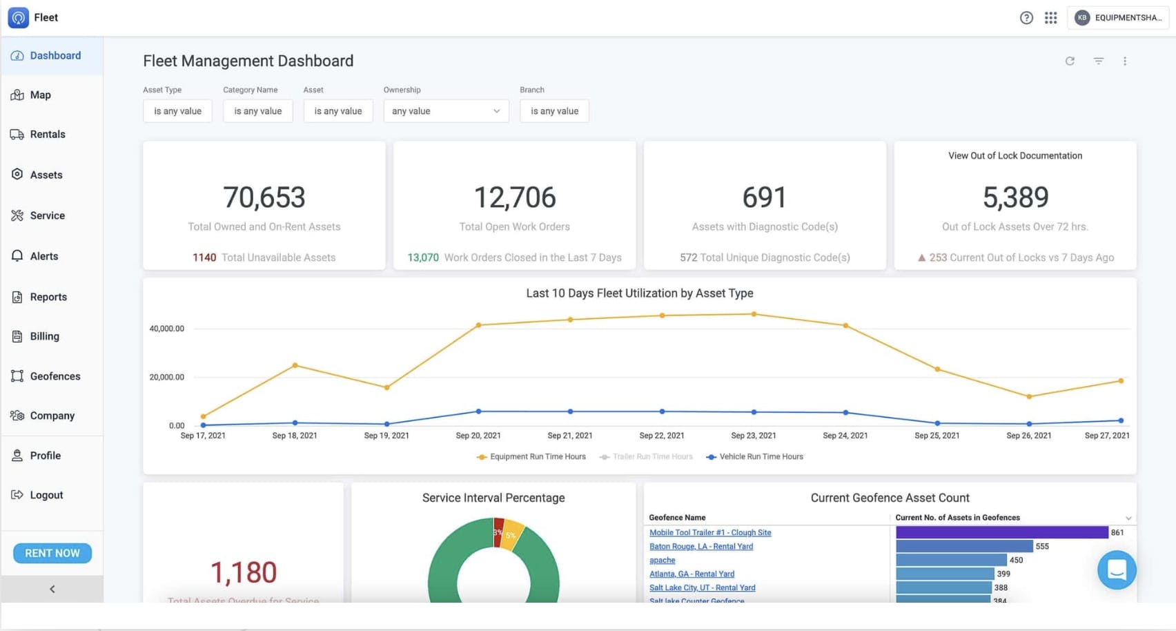 Fleet enables the organization and tracking of various tools, trailers, machines, and vehicles, regardless of make or model. It provides real-time visibility into each machine, including health and usage information. This health data aids in conducting preventive maintenance, thereby increasing equipment utilization. Fleet has the capability to digitize data from both rented and owned assets, and it can be accessed through desktop or mobile devices.