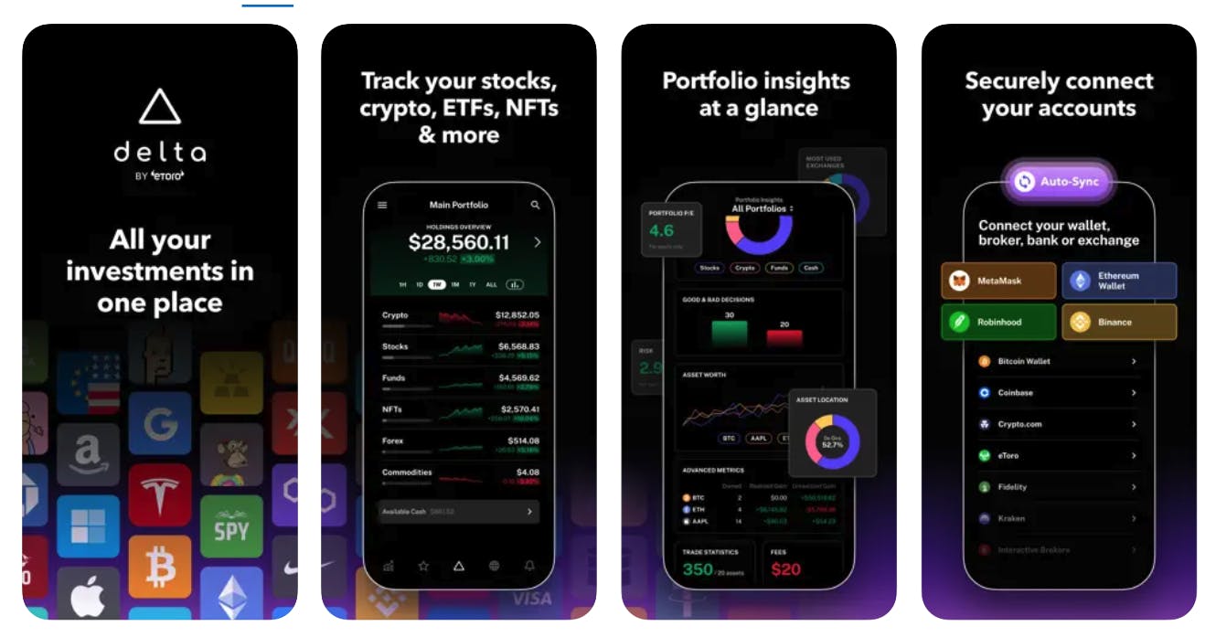 In 2019, eToro expanded its offerings to cater to a broader range of retail investors, including those who do not actively invest through its platform, by acquiring Delta, an investment tracking app. Delta operates independently from brokerage services, allowing investors to consolidate and track their investments from various accounts. The app supports connections to several prominent platforms, protocols, and wallets, including MetaMask, Ethereum, Robinhood, Binance, and eToro.
