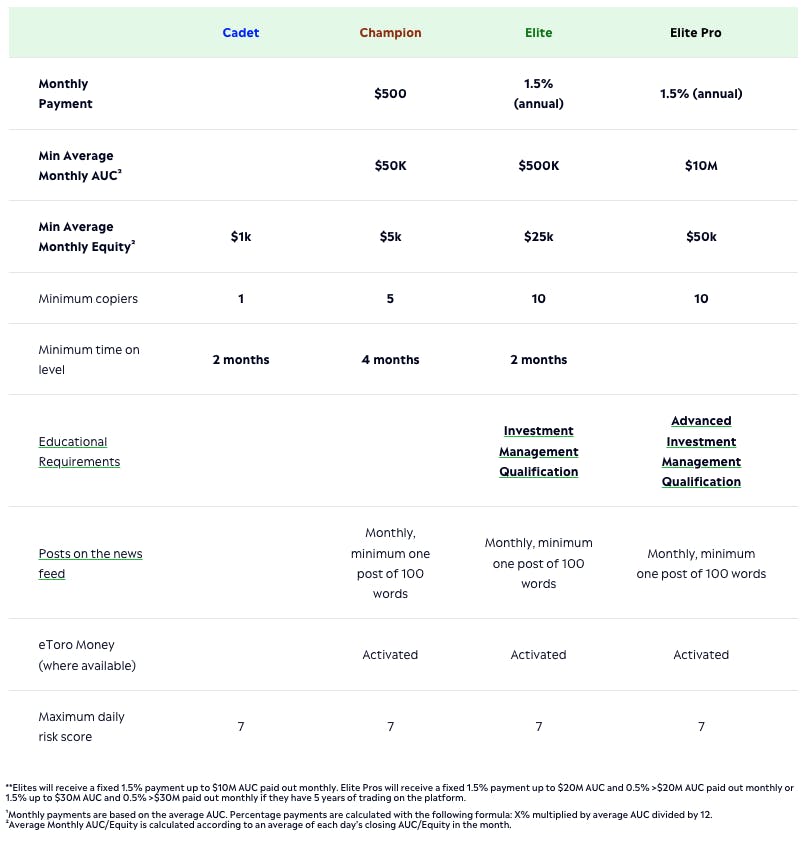 Popular investors are a central feature of eToro's platform, prominently displayed on the home screen and stock overview sections. Their primary role is to provide copy trading opportunities to other eToro users. When an investor is copy traded, they earn a monthly payment equating to 1.5% of the assets copied annually. To qualify as a popular investor on eToro, there are various requirements, depending on the subscription plan. These requirements include minimum equity, time commitment, and even investment certifications.