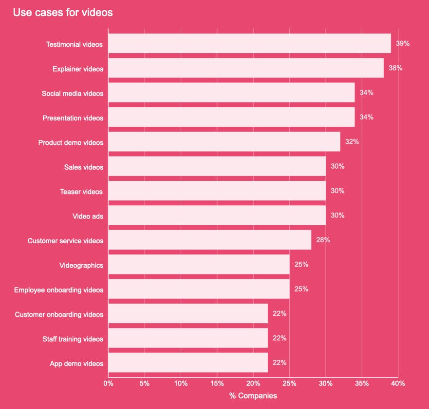 There has been a steady increase in the number of hours that people spend watching online videos each week. In 2022, people spent 19 hours, up from 10.5 hours in 2018. As a result, businesses have increasingly used video as a key channel to reach new customers, increase user engagement, and strengthen their brand. In 2023, 91% of users expressed a desire to see more content from businesses.