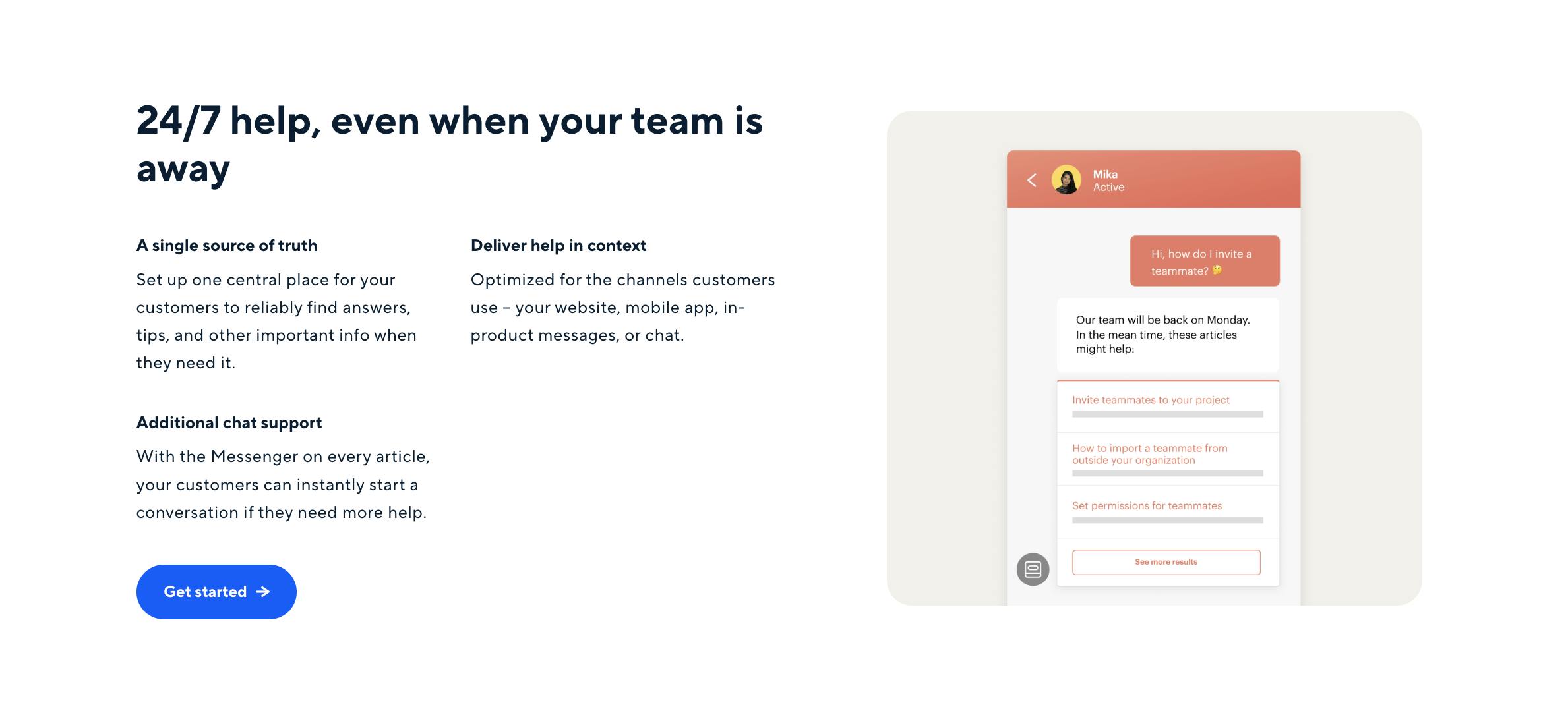 Help Center Articles: Intercom provides customers with a content hub where they can publish, organize, and monitor support articles. By giving companies an organized and detailed FAQ center, Intercom hopes to reduce the number of repetitive questions for support teams, while also giving customers answers 24/7. The Help Center is linked on every Intercom popup. Teams can also require a customer to search before opening a ticket. All articles are automatically translated into 47 languages, with support for brand customization and videos.