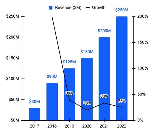 From 2013 to 2017, the company's annual recurring revenue grew from $50 million to $250 million. As of 2022, Intercom serves over 25K customers, including Atlassian, Amazon, and Lyft Business. Those customers generate 500M+ messages per month across 600M monthly active end users.