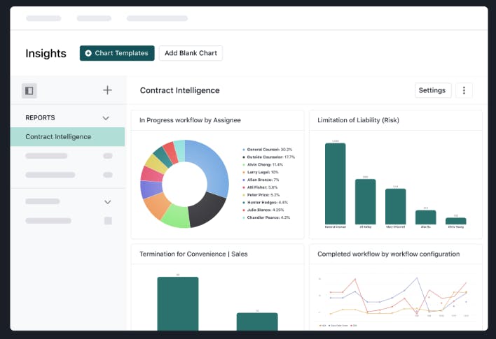 The length of time and complexity of managing the contracting process can make it difficult to keep track of. In addition, a company’s contracts represent a significant overview of its operations. Being able to extract data from that collection of contracts can give customers better insights into the various relationships they have with other companies. Ironclad’s reporting module allows customers to visualize their contracts as they move through the CLM process, and identify any potential bottlenecks for specific contracts.