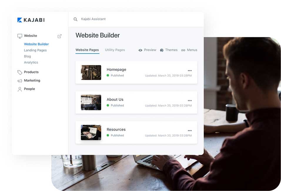 Kajabi's website builder allows creators to create an integrated online hub for their business. It offers customizable templates, drag-and-drop design features, and the ability to use custom domains. It also enables users to showcase products, publish content, and manage everything from one central location without needing design expertise.