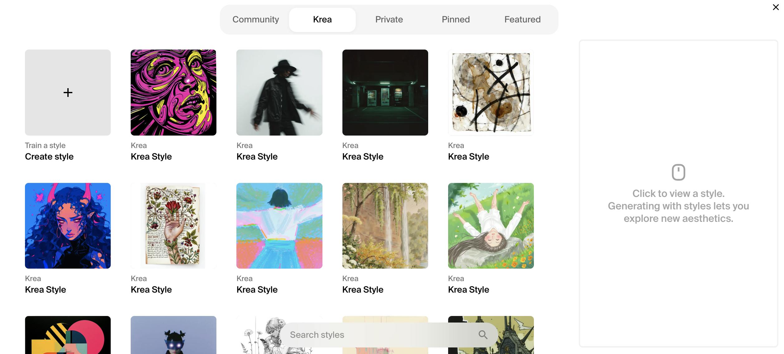 Besides creation, Krea provides a gallery for users to view other people’s work, share their work, and potentially collaborate. Some users share their prompts and styles to allow people to regenerate the same work.