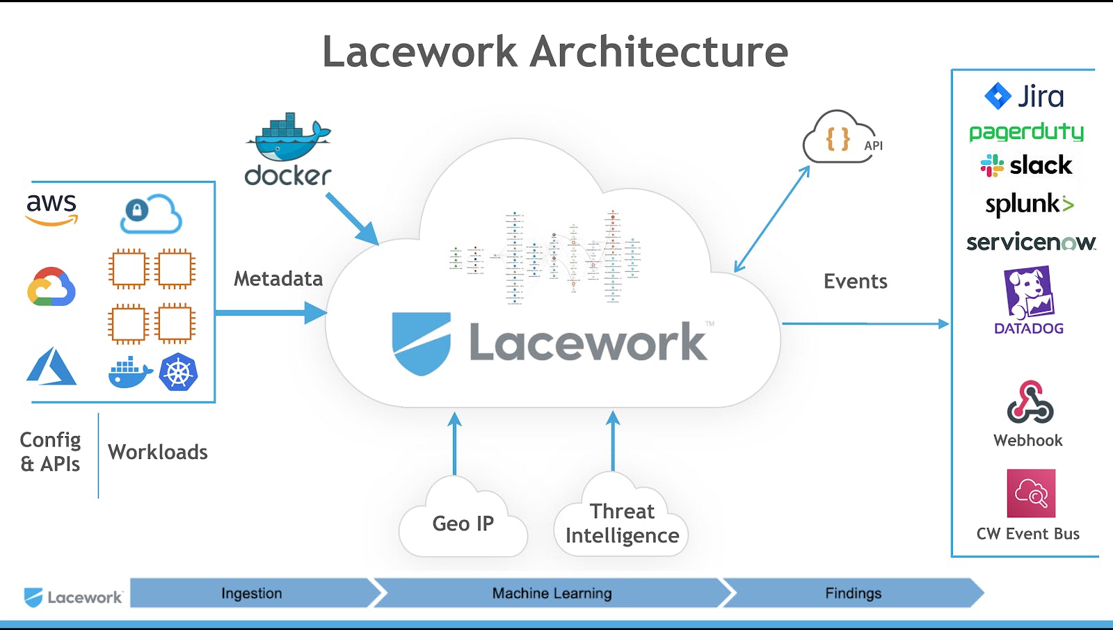 One of the biggest challenges facing SOC teams today is the extremely high number of alerts that security teams have to face on a daily basis. Lacework helps security teams overcome this security alert fatigue and frees time for them to focus on more advanced security problems. Laceworks’ architecture is able to ingest and integrate with a wide variety of data points from many enterprise solutions.