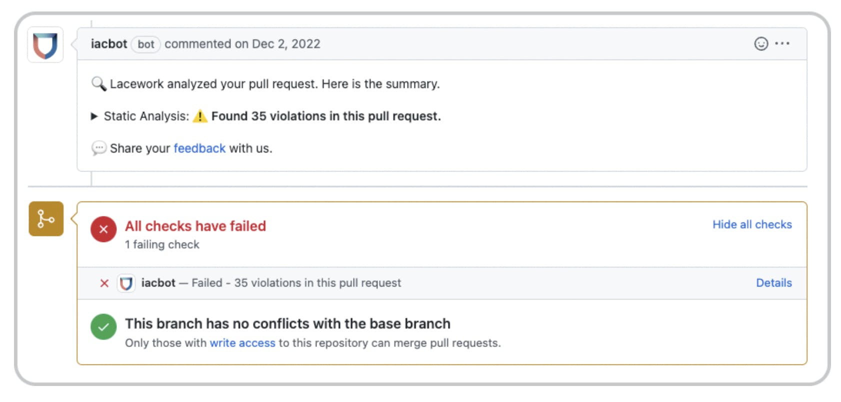Lacework also benefits from the shift to Infrastructure-as-Code (IaC) Security. Managing and provisioning infrastructure through code, rather than traditional manual processes, allows infrastructure provisioning to become more automated. Developers won’t need to manually provision and manage servers, operating systems, storage, and other infrastructure components each time they develop or deploy an application. This brings significant benefits to the modern enterprise; speed, efficiency, scalability, standardization, lower costs, and more.