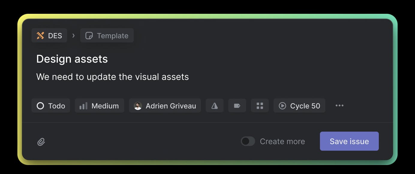 Properties carry over to new issues, and drafts save automatically. It offers issue templates to write issues faster. Linear enables users to import issues from other issue trackers, and its issue migration assistant supports Jira, Asana, GitHub Issues, and Shortcut.