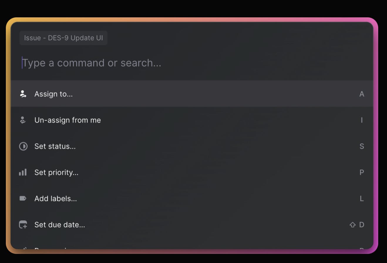 Speed is one thing that Linear sees as a selling point. The product is built around a keyboard-first design with numerous shortcuts. Major actions from issue creation to filtering to search are all simplified through preset shortcuts that can also be accessed through Command Line via CMD+K. According to Linear, every major action can be executed via shortcuts, eliminating mouse clicks.