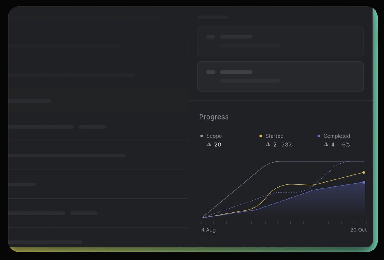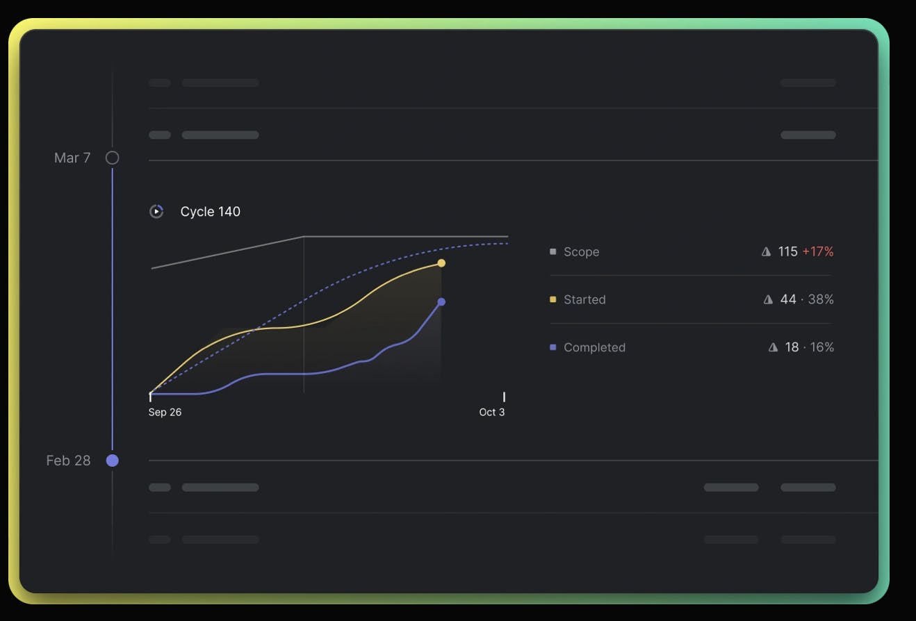 Within a cycle, users can see how the scope has changed over time, filter by a project, label, or assigned user. These features allow for a detailed report on progress, blockers and bottlenecks. Historical cycle tracking also helps monitor what a team realistically can complete in a period, assisting teams in prioritizing their workload.