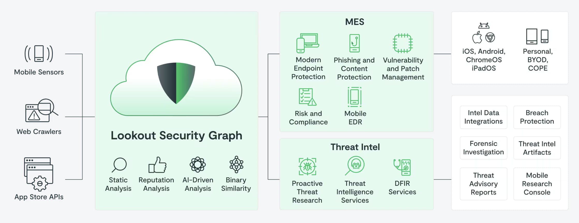 Lookout offers a mobile security product suite that includes Mobile Endpoint Security (Mobile EDR) and Threat Intelligence. The Mobile EDR solution provides real-time detection and response to mobile threats using AI and advanced threat intelligence. Meanwhile, Lookout's Threat Intelligence leverages the world's largest mobile telemetry dataset to track APT activity, discover new mobile malware, and provide actionable intelligence to organizations.