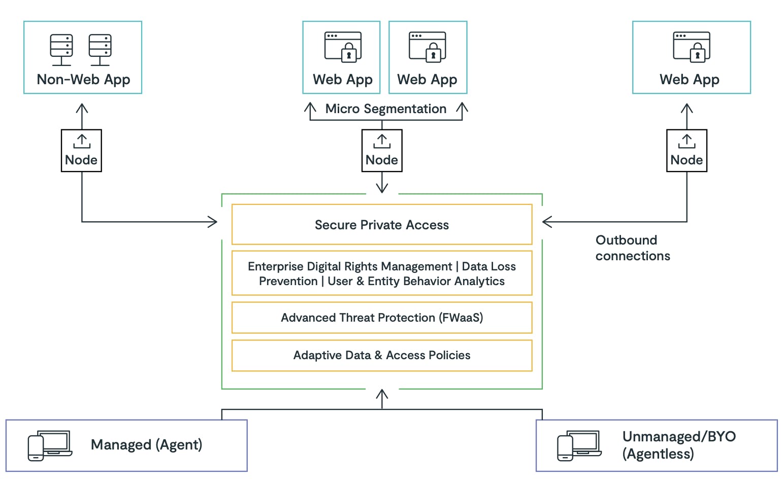 Secure Private Access (ZTNA): Lookout Secure Private Access is a cloud-delivered zero trust network access (ZTNA) solution for enterprise private applications and data. Similar to a virtual private network (VPN), ZTNA provides users access to private apps, regardless of user or app location. Unlike VPNs, however, Lookout’s ZTNA solution takes a data-first approach and performs continuous monitoring of user activity and device posture for adaptive access control.