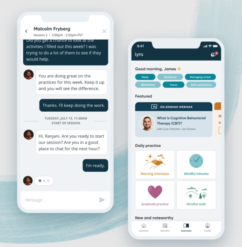 Lyra is a digital mental health platform that provides mental health benefits for employees. Through its platform, Lyra Health connects members to a network of therapists and coaches, offering various services to address personalized mental health needs. Lyra offers a blended care model that combines therapist visits with online resources to help its customers’ employees more easily access mental health resources.