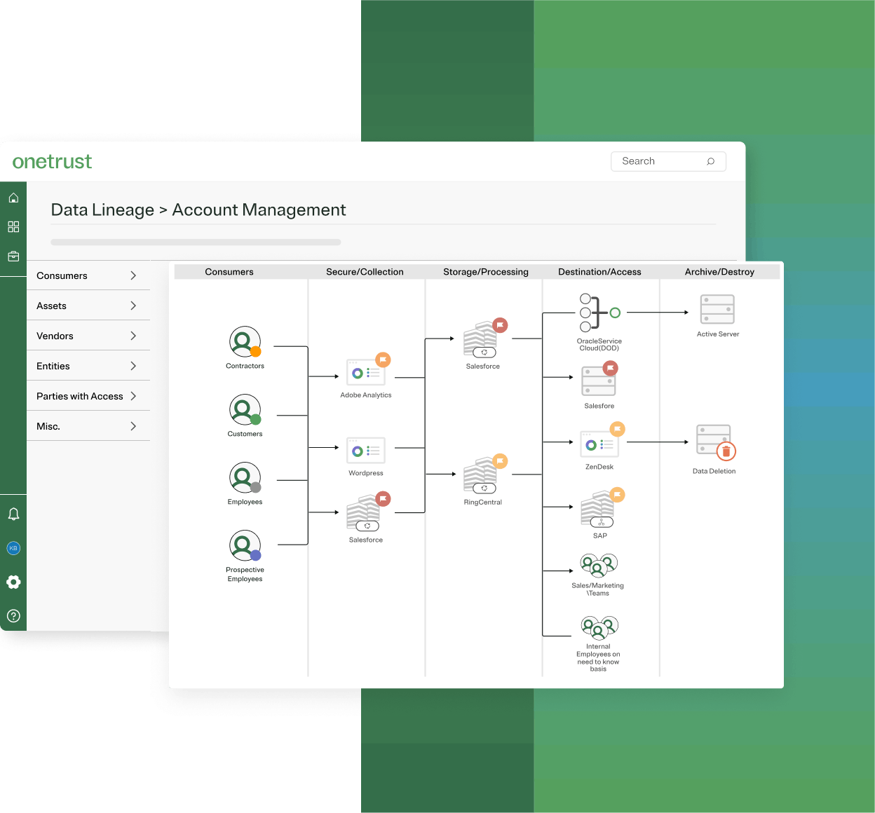 The platform's adoption within organizations typically starts with a specific department's needs, often privacy or legal teams responding to particular regulatory requirements. Initial deployments frequently focus on basic compliance requirements like cookie consent or vendor assessment. As organizations become more familiar with the platform, usage often expands to other departments. Marketing teams begin using it for consent management, security teams for vendor risk assessment, and data teams for governance policies.