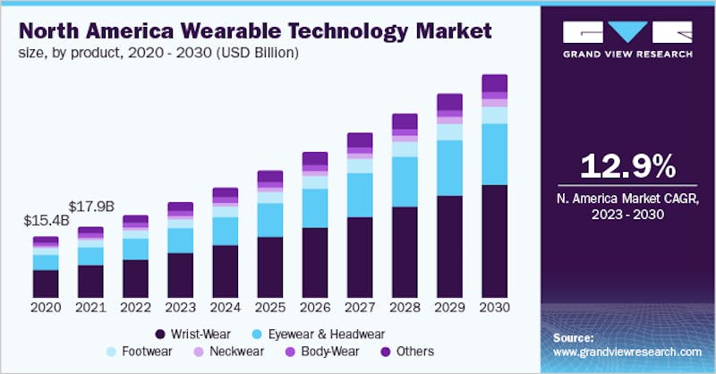 In 2021, the global wellness market was valued at $1.5 trillion ($450 billion in the US alone) and was growing 5-10% annually. Society has seen a rising trend of consumers taking control of their daily health, with over 50% of US consumers reporting wellness as a top priority in their daily lives. From tracking daily physical activity to monitoring sleep quality and heart rate, individuals are turning to technology to gain insights and make data-driven lifestyle choices. The trend has also spread to the corporate world, where respondents in a 2023 survey of health insurance brokers indicated that 64% of enterprise clients plan more investment in employee wellness programs. With the global health and wellness market projected to reach $12.9 trillion by 2031, there is an increasing demand for products and services that help individuals monitor their health and make informed decisions based on the data they collect.