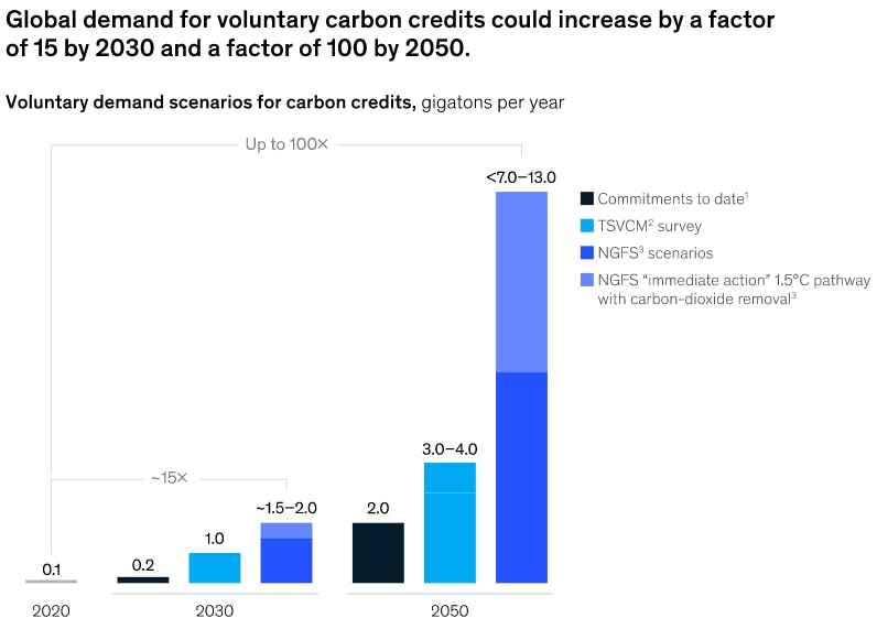 In the carbon offset market where Patch operates, McKinsey has done research on projected demand for carbon offsets through 2050, the final year of the Paris Agreement. McKinsey estimates demand for carbon credits is expected to increase 15-fold to a $50 billion market by 2030, and 100-fold by 2050.