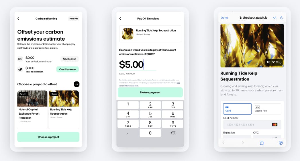 This is where Patch comes in. Patch is a digital marketplace and set of APIs that helps businesses find and purchase carbon offsets to reach their net zero goals. Patch's marketplace includes a variety of carbon offset projects such as reforestation, seaweed protection, and landfill gas capture. In addition, Patch's APIs allow companies to include carbon offset options in their checkout process, enabling customers to offset the emissions from the products they purchase.
