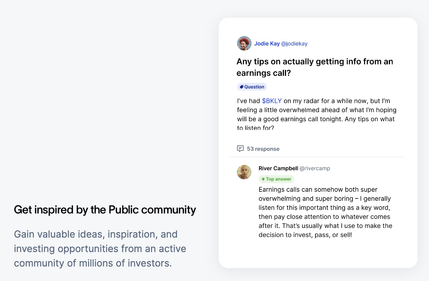 Public's Pulse feature is designed to connect public companies to their US retail investors. Pulse is the backend for Public’s consumer-facing “Public Live” center and gives companies an easy way to plan and host live earnings calls, and Q&As and distribute company news specifically to their retail investors on Public. Public describes Pulse as a way for companies to tell “the story behind their ticker”, by encouraging public companies to share their company mission, and competitive outlook, and address any concerns retail investors may have.