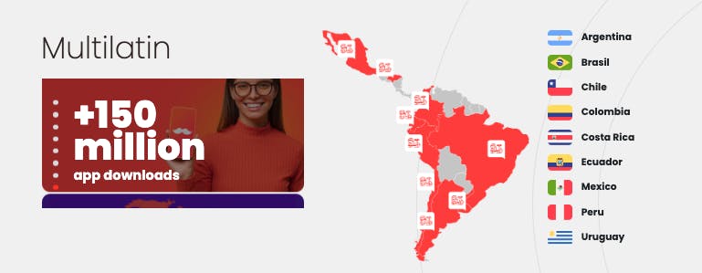 RappiBank and its financial service arm, RappiPay, operate as a fully integrated online banking platform within Rappi. Features include checking accounts, credit cards, and business loans that are intended to simplify financial management for users and enhance their overall experience. This product offering caters to a growing population of online banking service users in Latin America: 70% of adults in Latin America had made or received payments digitally as of 2023, up from just 40% in 2014.
