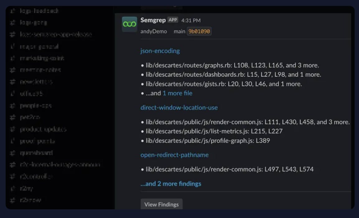 The platform allows for quick deployment of scans across the entire organization, integrating seamlessly with tools like GitHub, GitLab, and other source code management (SCM) and continuous integration (CI) systems. Security teams also gain granular control over how detected issues are handled. They can specify which issues are monitored by security, which ones notify developers within their workflow, and which critical bugs block code merges. Managing findings is streamlined through the platform's user interface, where teams can filter results by project, severity, branch, or specific rules. Integration with communication tools like Slack and email ensures that important alerts about critical findings reach the right people promptly.