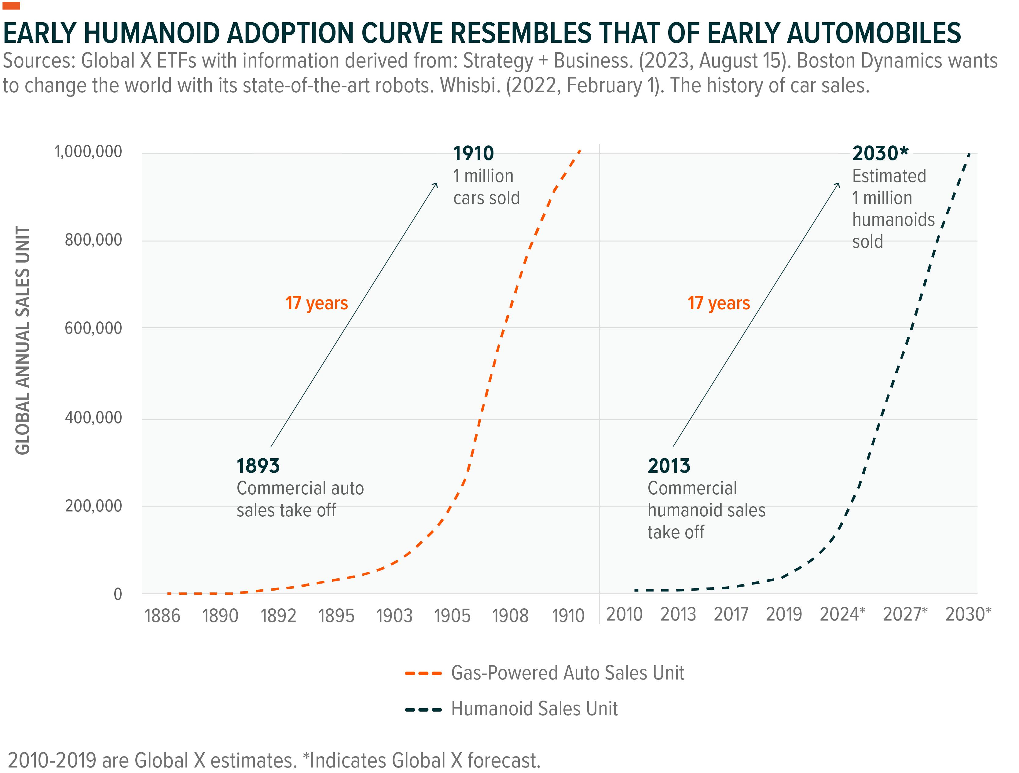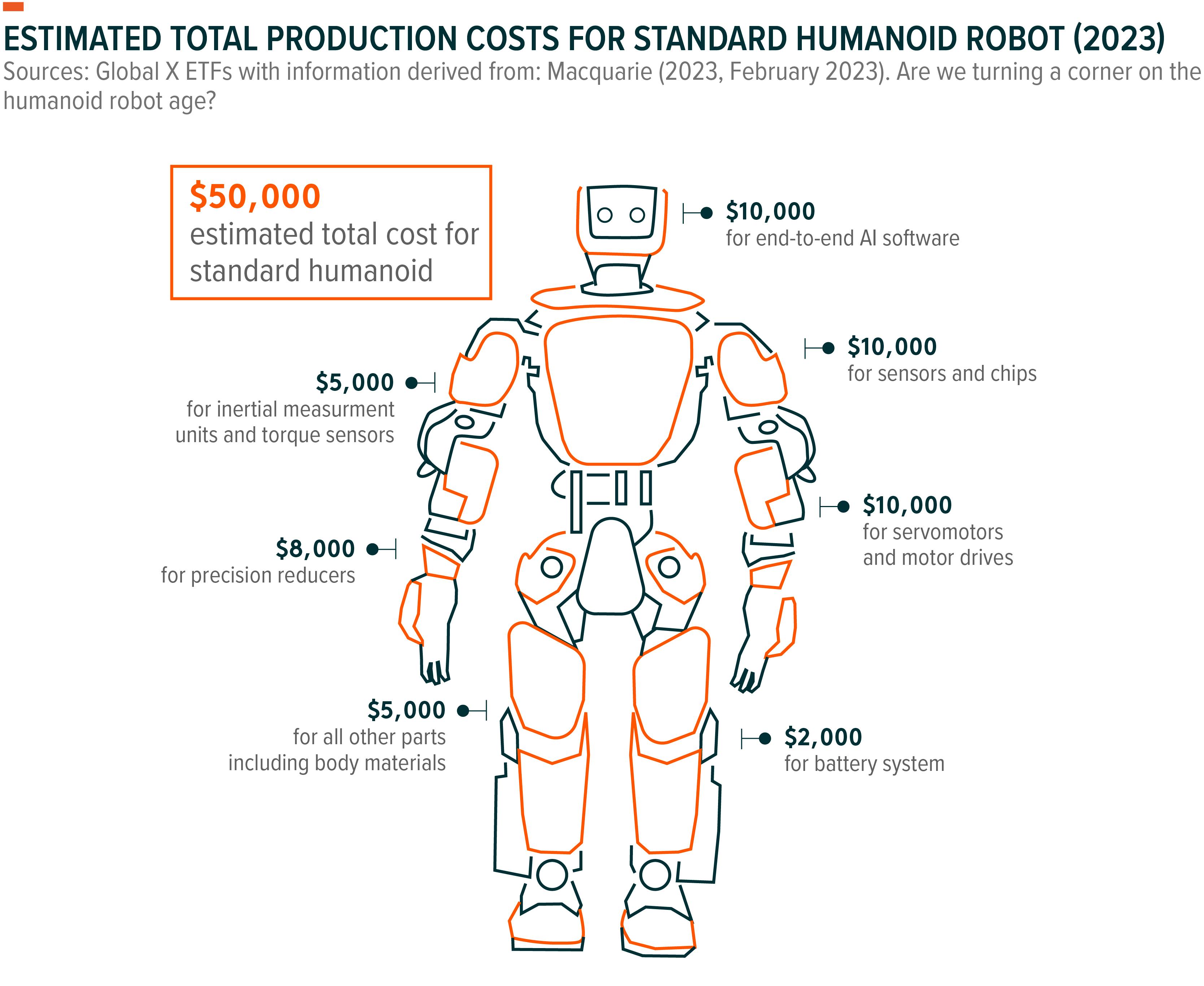 In the industrial sector, the potential market for humanoid robots is expected to grow from 252 million workers in 2024 to 400 million by 2035. The TAM is estimated to be roughly $1.8 trillion as of March 2024. Additionally, if humanoids can be utilized in, for example, up to 15% of the 1.5 billion global households by 2035 at an average selling price of $10K to $15K, the TAM for household humanoids could reach $2.8 trillion.