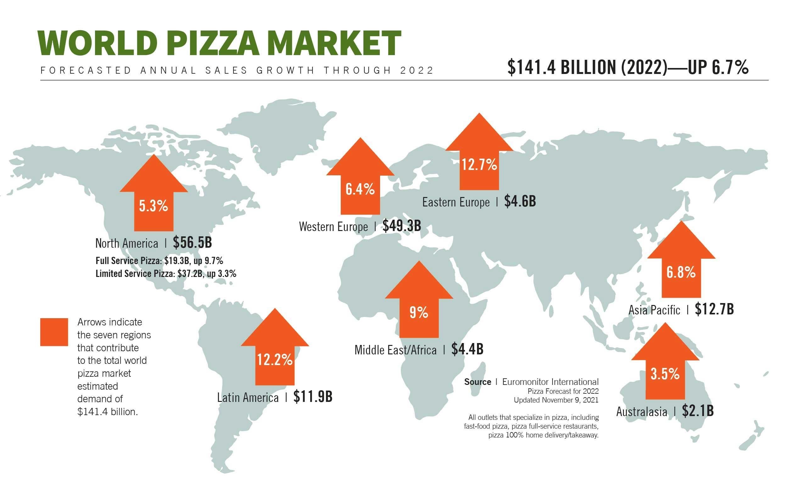 The US pizza market is ~$45 billion. There are over 75K pizzerias in the US, each doing an average of over $600K in annual sales. There are ~40k independent pizzerias. An average independent store did $451K per store in annual sales in 2021.