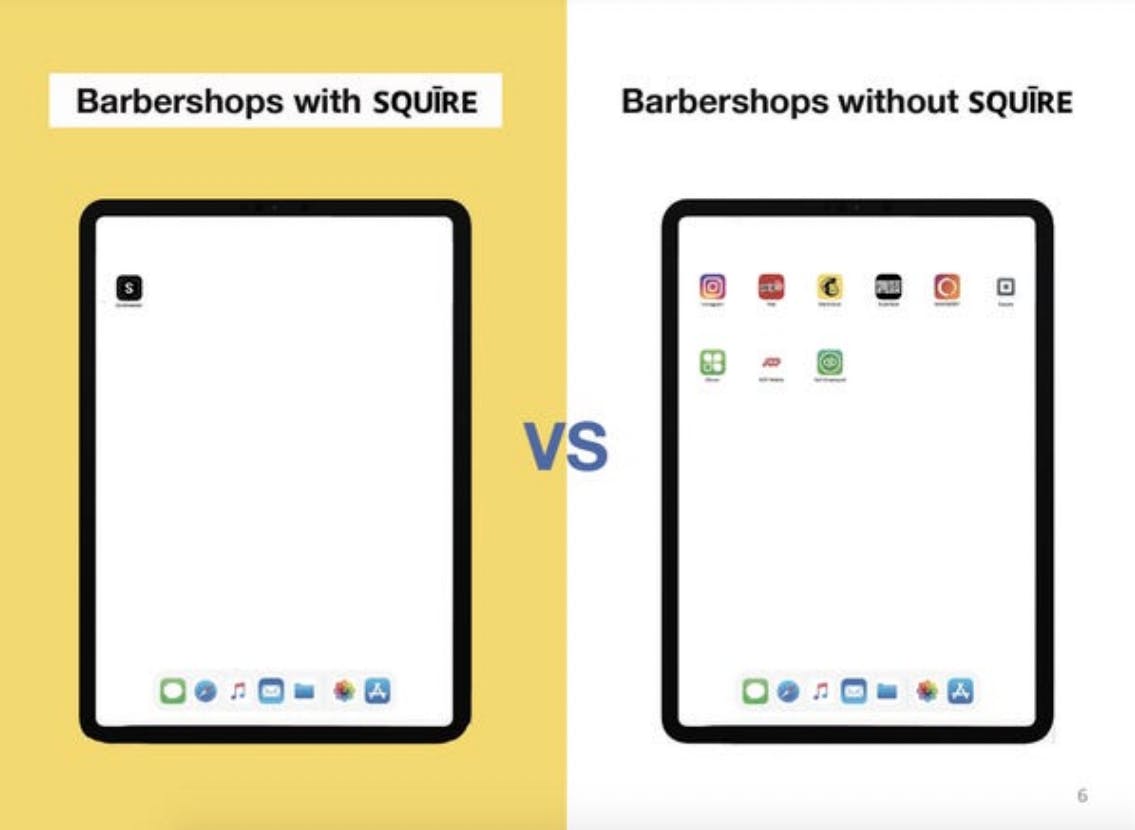 Squire is an all-in-one solution for barbershops. Its platform can be understood as five products: (1) a booking management system, (2) a workforce management system, (3) a customer relationship management (CRM) system, (4) inventory management, and (5) financial services centered around a point of sale (POS) system.