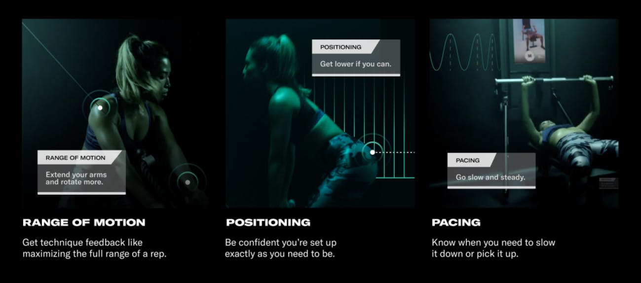 Tonal’s features include feedback on form, various weight modes, strength score, and smart accessories.