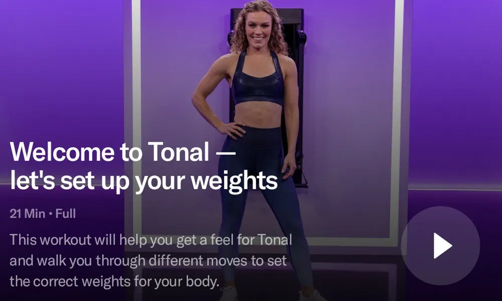 Tonal also offers personalized weight recommendations to its users. These recommendations are determined by a strength-training assessment upon first using Tonal. The assessment consists of four movements: seated lat pull-down, bench press, seated overhead press, and neutral grip deadlift. As the user goes through the movements, Tonal measures strength, force, power, speed, acceleration, and range of motion. From this information, it fine-tunes its weight suggestions.