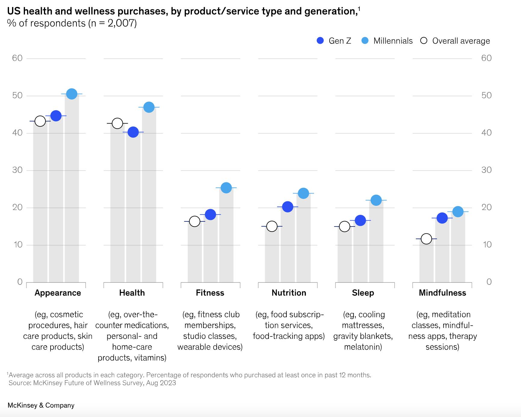 As of August 2021, the US adult population stood at around 258.3 million, meaning that about 72.3 million adults regularly exercise. This number includes individuals who participate in all kinds of physical activity, not just strength training. As of January 2024, Millennial and Gen Z consumers spent more on health and wellness than older age demographics. Considering Tonal’s customers are between 30 and 55 years old, it targets Millennials and Gen X consumers.