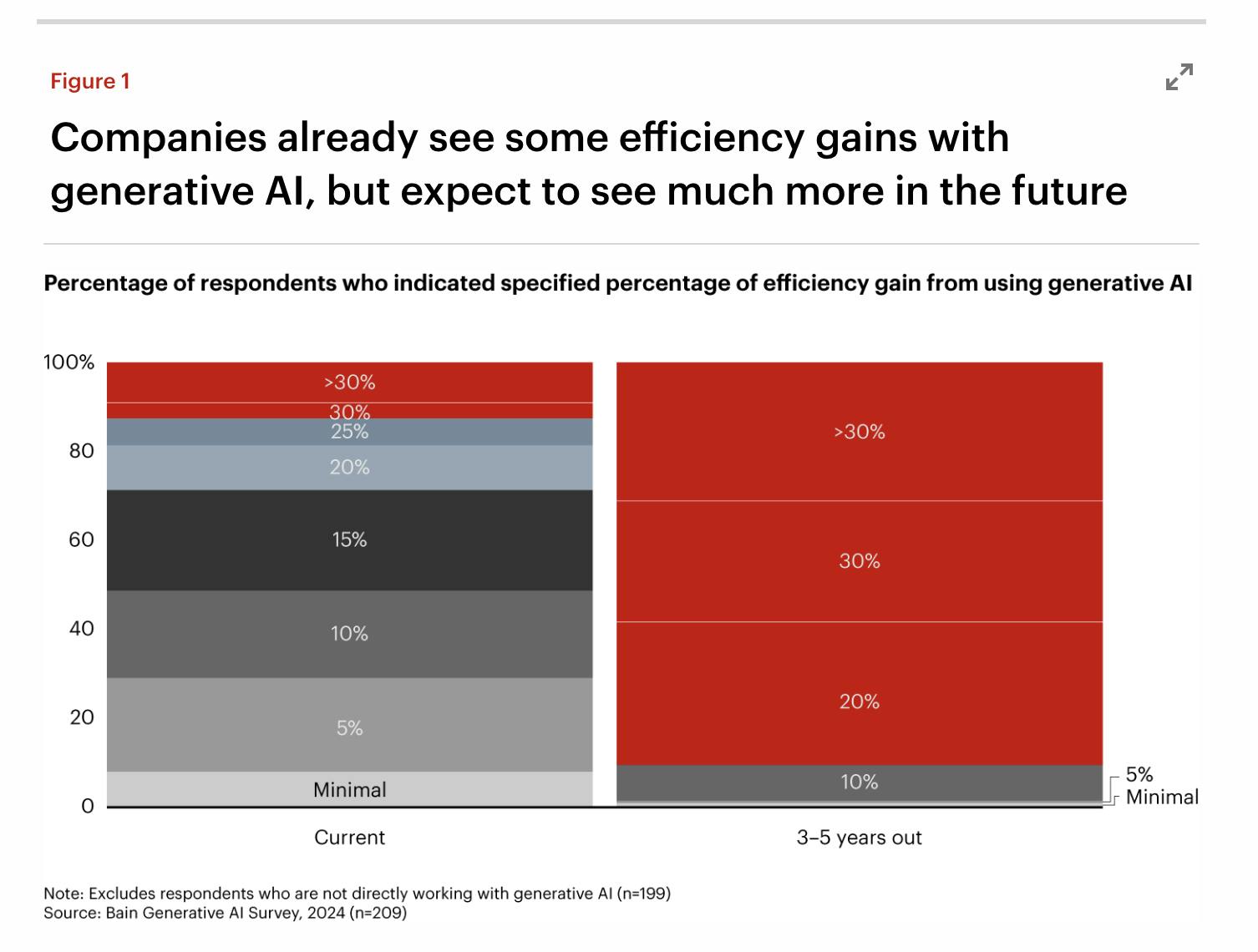 GenAI is already driving changes in enterprises. Amazon CEO Andy Jassy highlighted the impact of their GenAI assistant, Amazon Q Developer, which streamlined software upgrades, saving the equivalent of 4.5K developer-years and providing $260 million in annualized efficiency gains. Similarly, Google CEO Sundar Pichai revealed that AI systems now generate over 25% of new code for Google’s products, supported by tools like the internal AI model "Goose". As of May 2024, 65% of organizations now regularly use GenAI — nearly double the adoption rate from ten months prior.