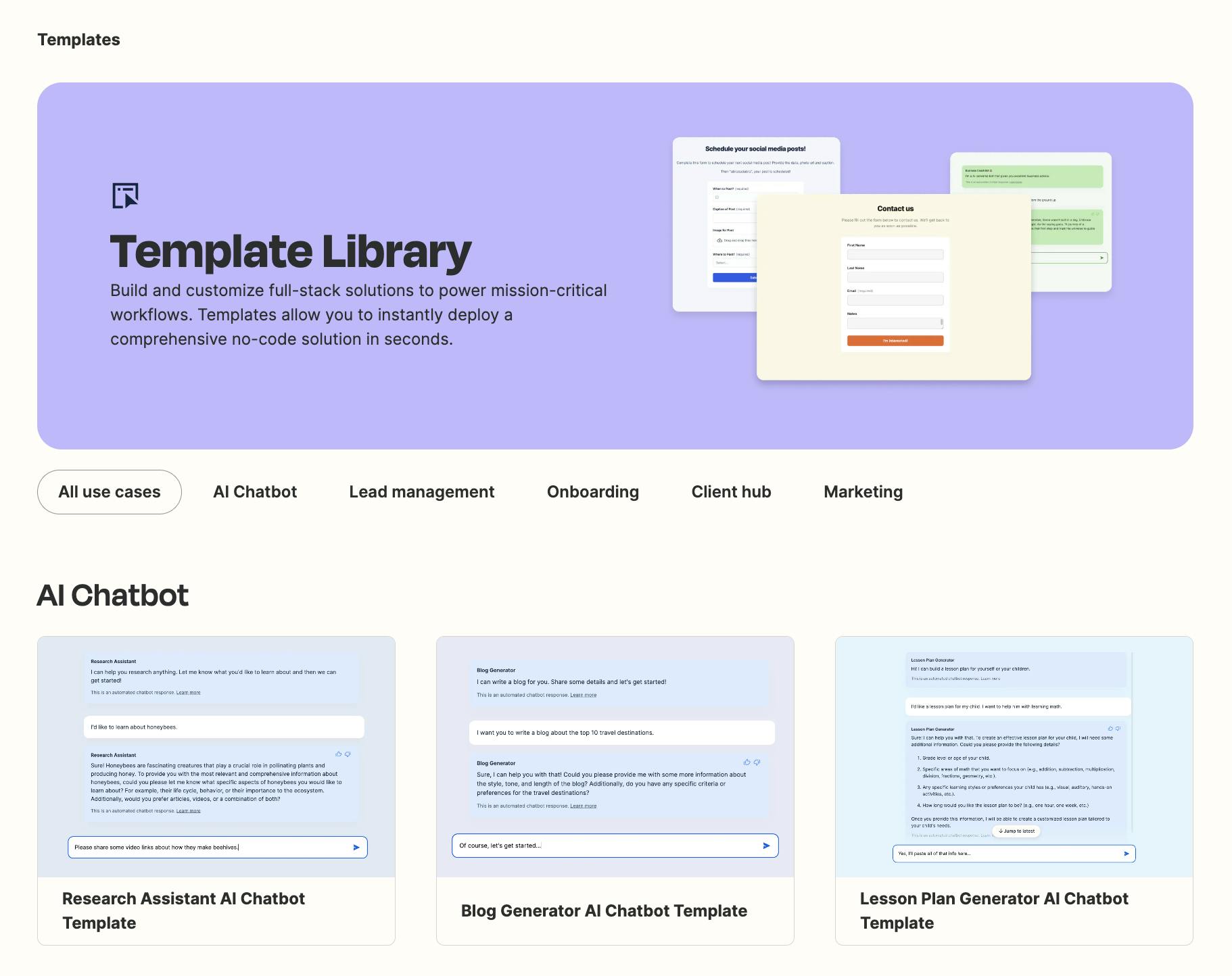 The Zap building experience is designed to be quick and eliminate repetitive work for users. Since it allows a wide range of apps to be connected without the use of codes, it allows users to set up automations that would otherwise need to be built internally by the engineering team. To increase the ease of use for common integration, Zapier offers a template library to help users with use cases such as AI chatbots, lead management, onboarding, client dashboards, and marketing operations.