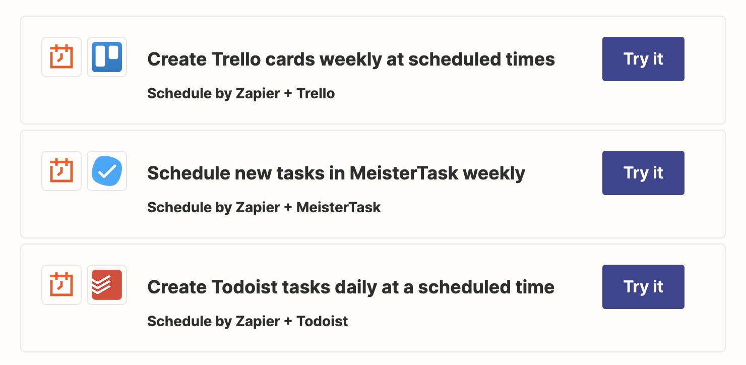 Zapier’s schedule feature allows Zaps to be triggered or started on a recurring schedule. Users can schedule Zaps to run daily, weekly, or monthly on a specific hour, day of week, or day of the month, with the ability to turn weekends on or off.